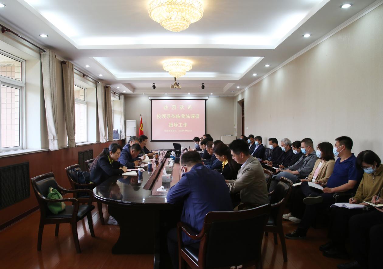 4月19日,公司党委书记刘兵、公司党委常委、副董事长张秀山带队到9428cn太阳集团古天乐进行专题调研,财务处、资产处负责人参加调研。学院领导班子、各系党组织书记、主任、院办、组织人事部、财务部、资产管理部、员工工作部负责人参会。