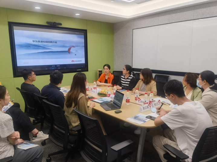 5月19日下午,就业工作部同各系副书记、就业负责人到华为慧通商务有限公司走访调研。华为慧通商务有限公司河北终端石家庄渠道经理王恩志、石家庄零售经理徐志远、招调经理杨雪园、人力资源经理袁铖铖、政企代表陈旭和公司2022届毕业生张展参加座谈。