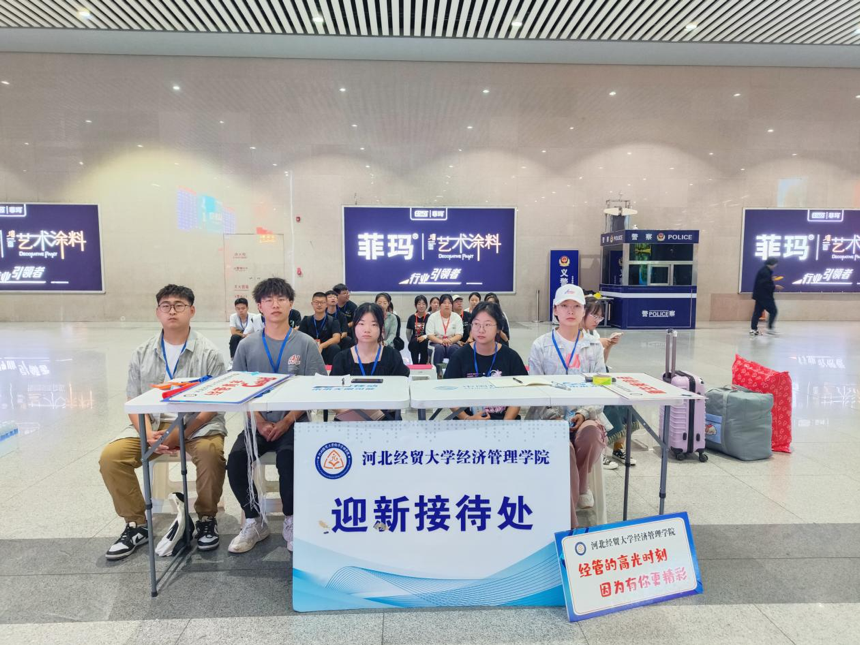 为了方便乘坐火车来的员工,学院在火车站为2023级本科生提供免费接站服务,志愿者们将接站牌摆在最显眼位置,让“萌新”们一出站就感受到经管温暖的“第一缕阳光”。