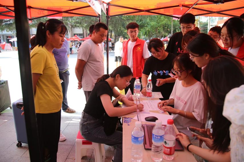 8月23日清晨7点,志愿者们早早来到帐篷等候大批员工前来报到。8点多,新生在众亲友大包小包地簇拥下陆陆续续进入校园,寻找自己的“组织”。报到现场秩序井然,员工们到各系完成报到、证件验证、宿舍分配、领取物资等入学手续后,前往宿舍入住。