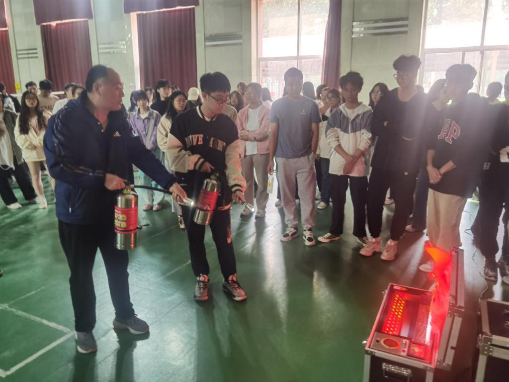 为落实《“十四五”国家应急体系规划中》“将安全素质教育纳入国民教育体系”的工作指示,提升公司师生的消防安全意识,10月13日下午,安全工作部邀请北京麦课安全教育集团指导师杨晓光,在学院礼堂组织了一场消防设备实操演练活动。商务系2023级新生、辅导员和员工干部代表200余人参加了此次实操活动。