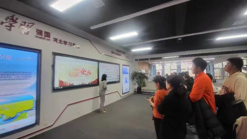 在工作人员的陪同下师生们依次参观了长城新媒体集团XR演播室、河北省学习强国平台编辑部和“冀云”融媒体平台,近距离感受新媒体技术的快速发展。长城新媒体XR演播厅代表了新媒体技术的最新应用,引领着媒体行业的未来方向,师生们沉浸在一场前所未有的虚拟奇遇中;参观河北省学习强国平台编辑部,同学们对数字化学习和新闻传播相结合的前景有了更清晰的认识;“冀云”融媒体平台不仅是一个信息汇聚地,更是数字化时代融媒体发展的缩影。同学们深入了解了数字化技术的精髓和虚拟主播在新闻传播领域的前沿应用,这一创新引起了同学们对未来新闻传播形式的思考,认识到数字化技术在传媒领域的深刻变革。