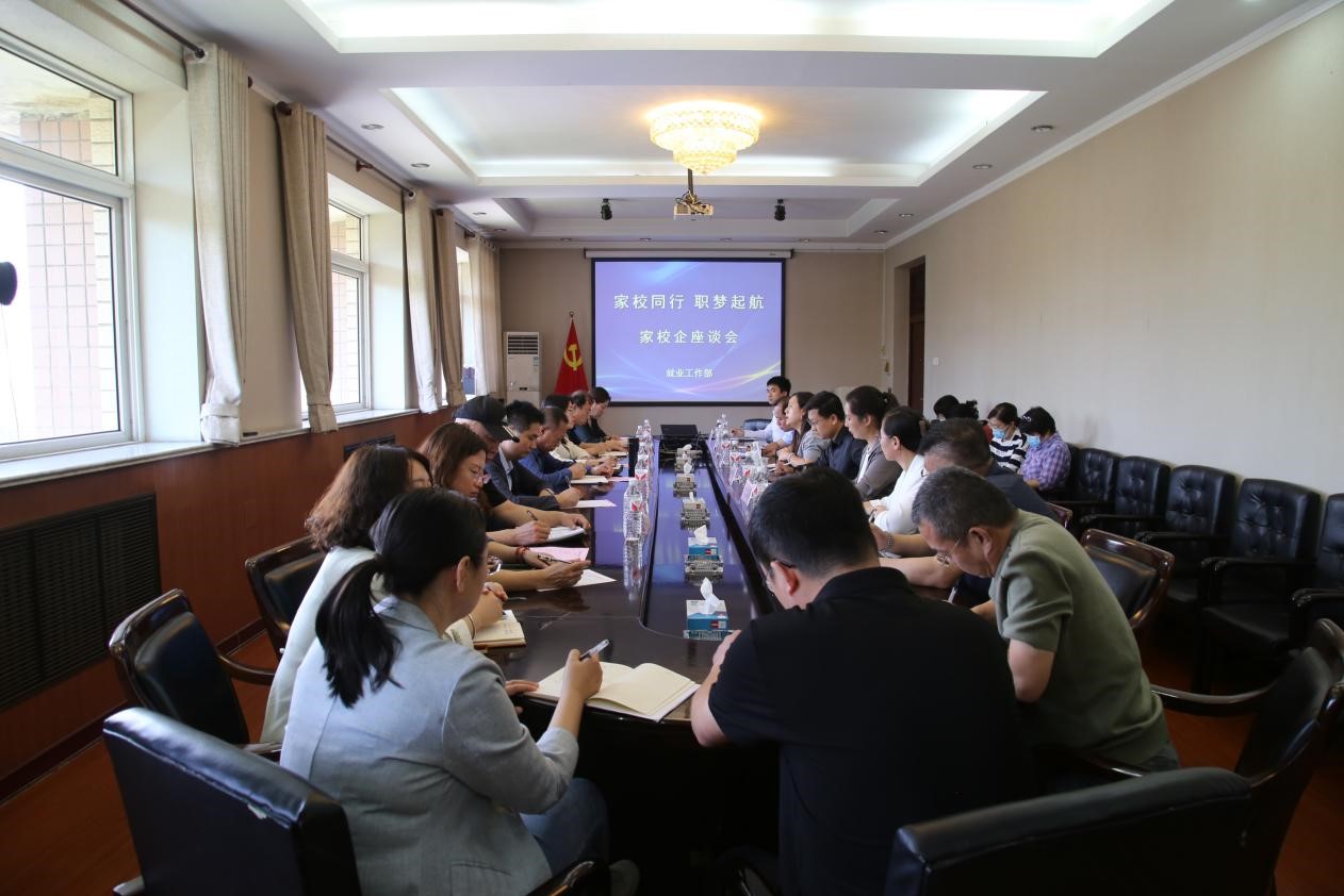 5月17日,正值春季校园双选会召开之际,公司邀请企业和员工家长代表在五楼会议室召开校企家座谈会,共同就毕业生就业问题展开深入探讨。经理刘风长、公司党委书记蔡杨出席,各系负责人和部分辅导员参加,座谈会由副经理王鸿喜主持。