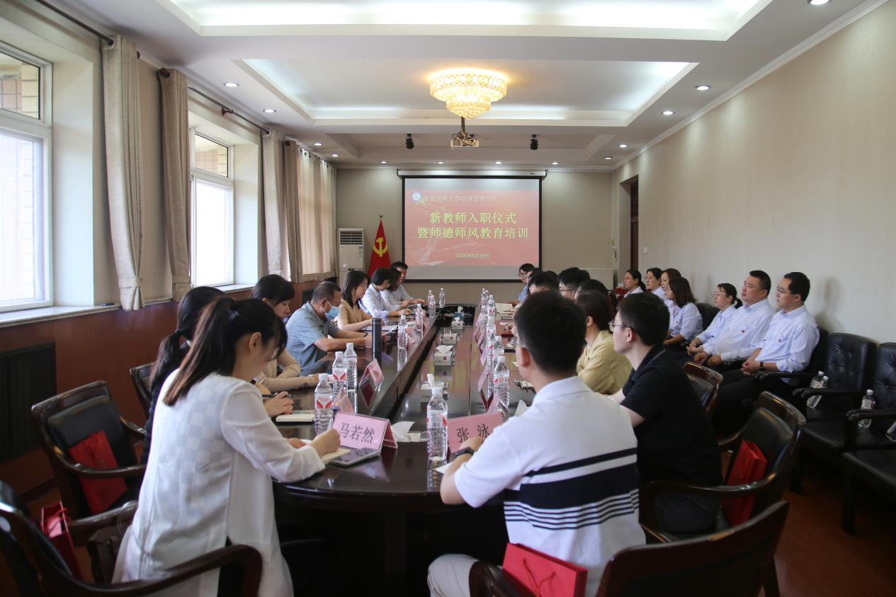 为提升新入职教师的育人使命感和职业归属感,帮助其在立德树人的新征程上开好篇、起好步,8月18日,学院2024年新教师入职仪式暨师德师风教育培训会在五楼会议室举行。公司党委书记蔡杨、经理刘风长出席并讲话,人力资源部副部长马媛主持会议并对新入职教师进行师德师风培训,学院老教师代表和13位新入职教师参加了活动。