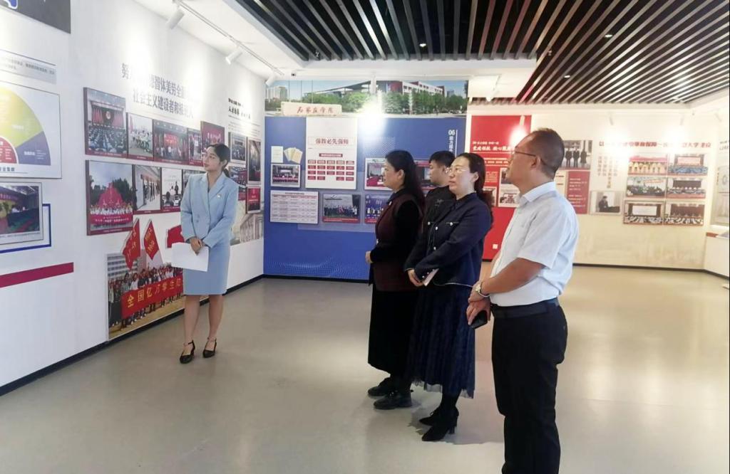 张丽英一行在石家庄学院美术与设计公司党总支书记史晶、宣传部副部长姚振伟的陪同下,先后参观了石家庄学院校史馆、石家庄地域文化馆、融媒体中心,详细了解了该校的办学历史、发展战略、校园文化及阵地建设情况,并与石家庄学院宣传部工作人员进行了座谈。