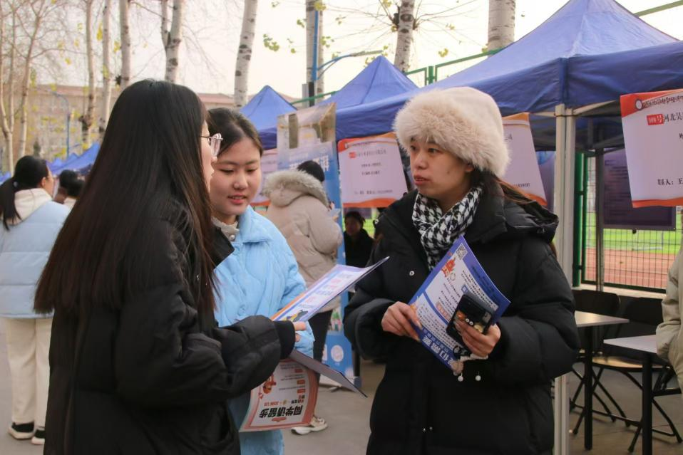 随着峰会议程接近尾声,在操场甬道举办的招聘会拉开帷幕。