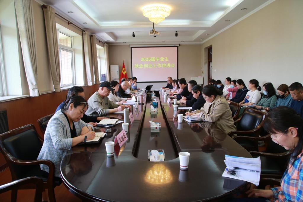 4月16日,学院在五楼会议室召开2025届毕业生就业创业工作推进会。公司党委书记蔡杨、经理李大庆、副经理王鸿喜出席,各系负责人、就业工作部人员及各系辅导员参加,会议由副经理王鸿喜主持。