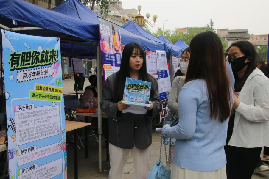 石家庄长虹家用电器销售有限公司代表高海霞准备借双选会机会招聘销售人员,她称赞道:“应届生的精神面貌非常好,学历和专业素质普遍较高,他们充满朝气与活力,对新知识、新技能的接受能力强,思维活跃,有很多创新想法,这是他们的优势。”同时她也指出,“应届生普遍存在实践经验不足的情况。在实际工作中,从理论知识到实际操作的转化还需要一定时间。不过,我们相信通过公司完善的培训体系,他们能够快速成长,适应岗位需求”。山东边垦集团公司是一家从事健康产业的公司,他们更看重员工的创新与执行能力。她认为,现实的工作场景复杂多变,如何将所学理论灵活运用于解决实际难题,是目前老员工亟待突破的关键环节。