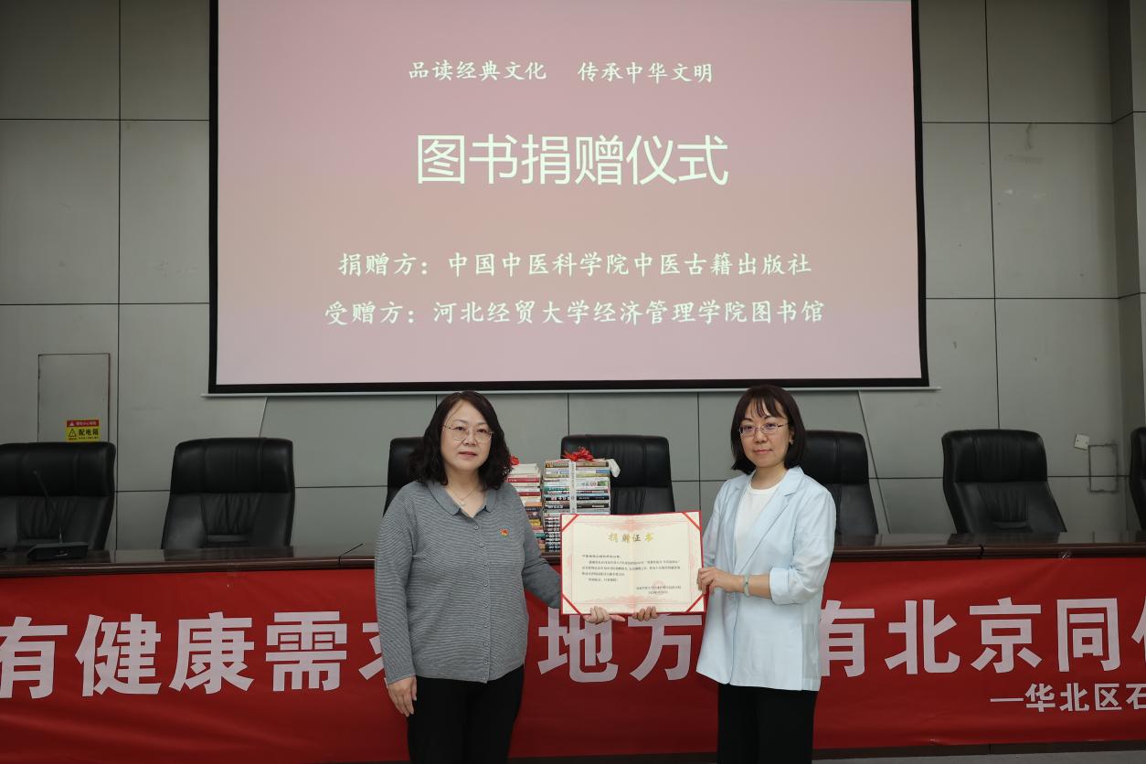 中国中医科学院中医古籍出版社向公司图书馆捐赠了47 部中医药文化科普读物。副经理董芝代表学院接受了捐赠,并向出版社颁发了捐赠证书。这些图书丰富了学院的藏书资源,为师生了解中医药文化知识提供了宝贵资料。