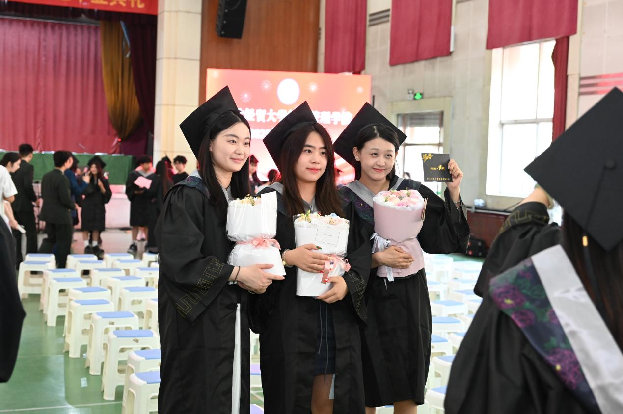教师代表王文福为毕业生送上祝福。他希望同学们治学以韧,在人工智能时代,养成终身学习习惯,保持独立思考、创新与批判性思维;兴业以远,胸怀家国,以专业之力守护经济生态;立身以廉,要以“廉介”为尺,让财富与抉择无愧于心。他希望同学们常回来看看,无论走到哪里,母校永远是心灵的港湾。