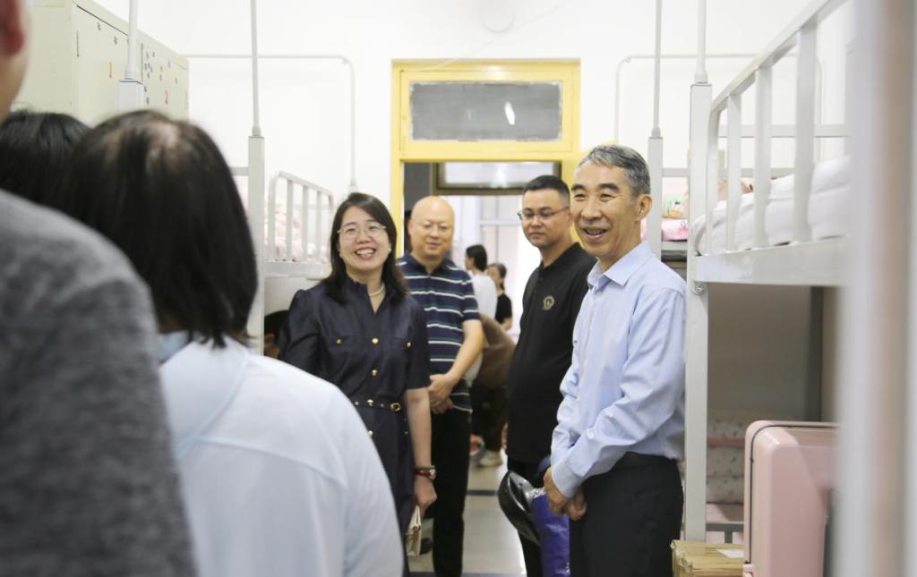 在9号楼员工公寓,高波仔细查看了员工的居住环境,并与新生家长亲切交谈,询问他们对大学校园的初步印象,叮嘱员工要注意用电安全,遵守宿舍管理规定。随后,一行人来到员工食堂,到各档口查看了饭菜的花色品种,询问正在用餐的新生及家长对饭菜的满意度。他强调,后勤部门要严格执行卫生标准,加强监督,提升食品安全水平,满足师生多元化用餐需求,为师生提供更加优质的餐饮服务。