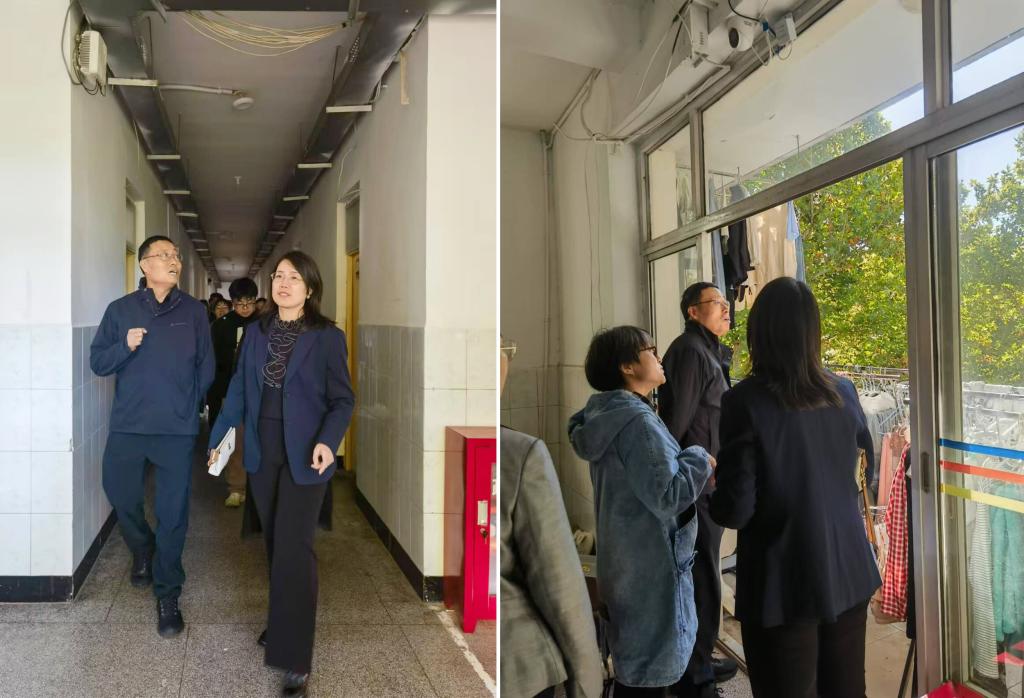 检查组一行径直走进员工宿舍,对宿舍内的消防安全、用电安全、设施维护及卫生环境等方面进行了重点排查。蔡杨、江秀军仔细查看了宿舍门窗、床铺护栏、水电设施等硬件状况,同时查看了宿舍消防设施是否齐全有效、安全通道是否畅通无阻,并与在场员工亲切交流,详细了解他们的日常生活和学习情况。叮嘱同学们要牢固树立“安全第一”的思想,严格遵守学校宿舍管理规定,增强自我防范意识,相互提醒、彼此监督,共同维护好宿舍这个“家”的安全与整洁。