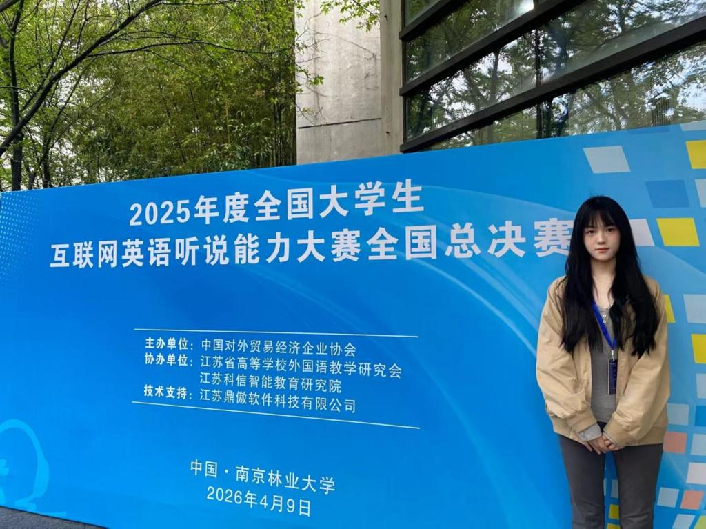 此次大赛由中国对外贸易经济企业协会主办,江苏省高等学校外国语教学研究会和南京林业大学承办。总决赛以英语听说能力为主要考察目标和评审原则,分为朗读、复述、听后评论或回答问题三个部分。根据参赛选手的发音、语调、流利度、完整度四个维度,网络智能语音平台对朗读部分进行识别诊断实时评分,现场评委根据参赛选手复述原文基本点的覆盖率和听后复述或回答问题的准确率进行综合评分。最终,罗子璠同学凭借扎实的语言基础、敏捷的思维能力和出色的临场发挥勇夺国赛三等奖。