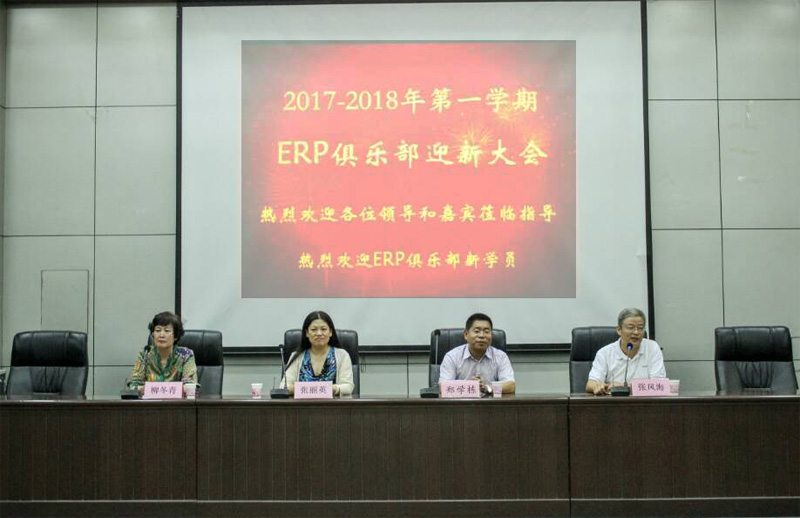 9月25日下午,由实践教学部主办的2017-2018年第一学期ERP俱乐部迎新宣讲大会在图书馆报告厅举行。公司党委副书记张丽英、经济系书记郑学栋、实践教学部部长张风海、副部长柳冬青出席了本次活动。