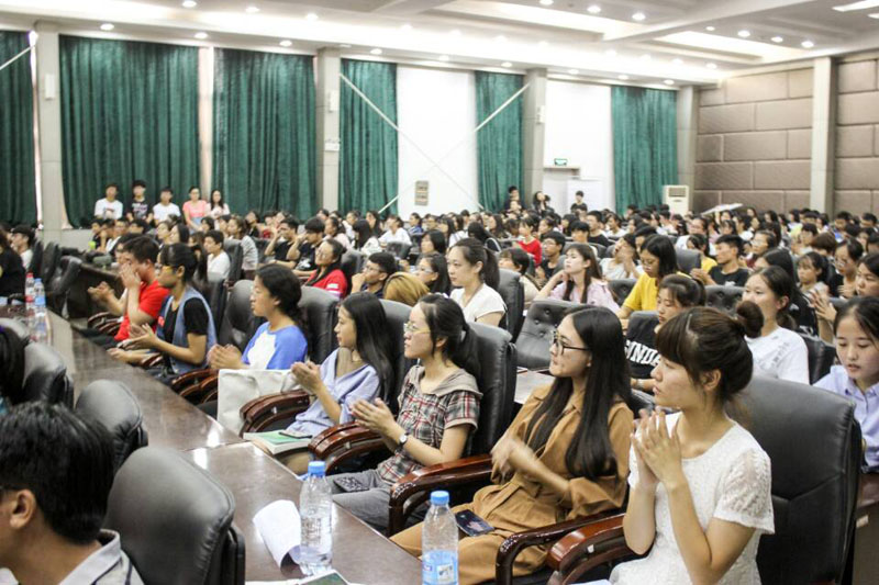 实践教学部何小强老师以图文并茂的方式对ERP俱乐部做了详细的介绍。内容包括本学期的ERP迎新情况、各项赛事介绍和历年来取得的成绩以及本学期培训安排等。随后,ERP俱乐部的5个协会员工代表也以PPT演讲的方式,分别向同学们以自己的亲身体会进行介绍,分享了他们通过培训、竞赛取得的收获与感悟,感染了在场的每一位同学,掌声不断。
