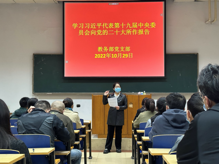 10月28日下午,教务部党支部集体学习了习近平总书记在党的二十大开幕会上所作的报告。结合当前疫情防控形势,本次活动通过线下线上方式开展。教务部部长、教务部党支部书记郭占欣主持学习会,教务部全体党员参加。
