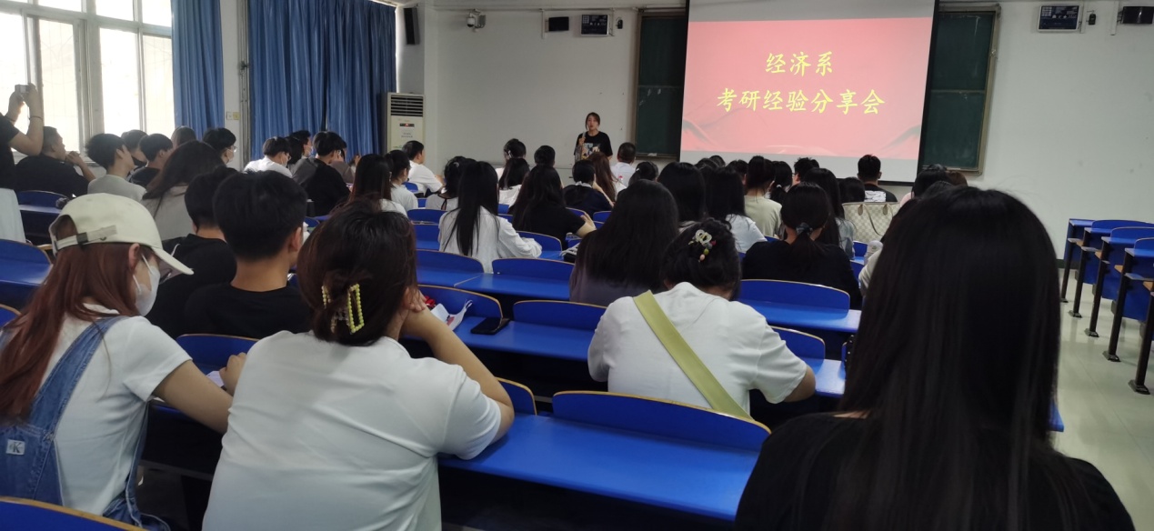 经济系在充分摸底调研2024届毕业生考研情况的前提下,为帮助同学们提前明确考研目标,掌握考研技巧,了解更多考研信息,5月29日下午,我系在南三教102举办“逐梦青春 研途有你”考研经验分享会,系党委书记蔡杨、主任张瑞锋及100余名员工参加。