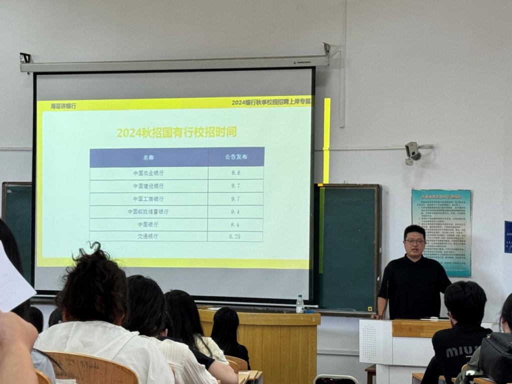 6月17日下午,经济系邀请银行招聘考试与就业方面的专家三石老师在北二教107开展银行校园招聘专题指导讲座,经济系辅导员王琪和2021级员工代表200余人参加此次活动。