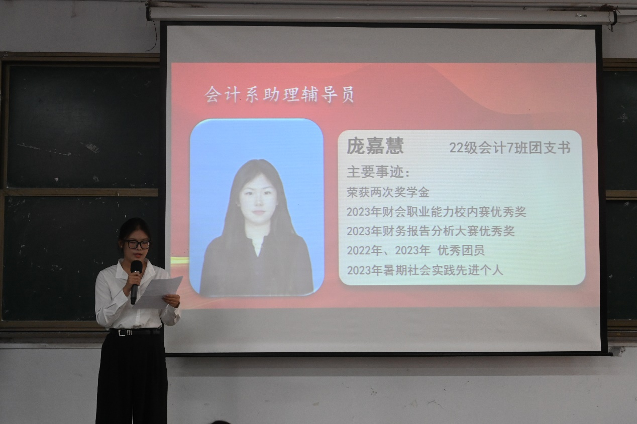 为进一步践行2024年全国教育大会精神,突出“以员工为本”的教育特色,发挥员工干部主体作用,培树员工主人翁意识,10月9日,我系在西阶梯教室召开第四届“典”亮青春员工组织负责人、助理辅导员及消防安全员聘任仪式。会计系党委副书记张艳敏、教务秘书邓怀宇、团总支书记陈江伟、全体辅导员及220名员工干部参加了此次活动。