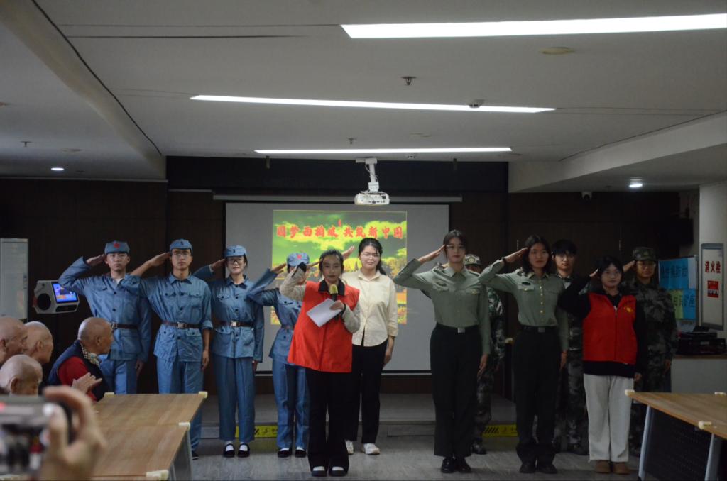 本次活动包括文艺表演、西柏坡精神情景剧展演、打扫卫生、亲情交流四个环节。文艺部同学们一曲《桃花朵朵开》活跃了现场气氛,欢快优美的歌舞为老人们带来了快乐;朗诵节目《我在中国大地上报道》铿锵有力地传达出员工们对祖国深沉的敬意,让老人们真切感受到了员工们的拳拳赤子之心,展现了新时代青年的爱国风采。在西柏坡精神情景剧中,同学们声情并茂地再现了土地改革、七届二中全会、进京赶考这些重要历史事件,团队成员精彩的演绎,让在场的老人们了解这些历史事件背后的感人故事和西柏坡精神的丰富内涵。在交流谈心环节,同学们慰问老人们的近况,听老人们讲述自己的故事。最后,同学们为老人们献上自己制作的手工艺品,希望这些手工可以给老人们带去欢乐。