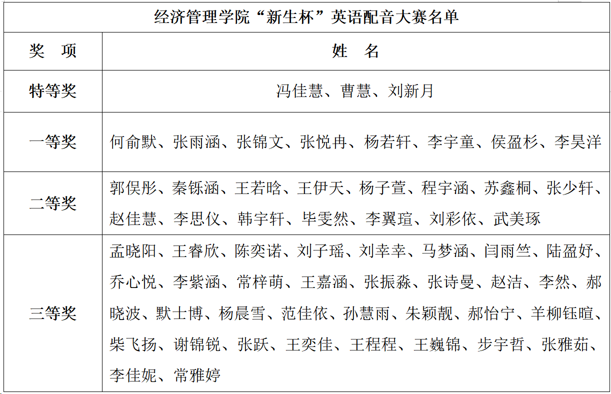“新生杯”英语配音大赛选取了2023年“高教社杯”河北省老员工“用外语讲好中国故事”短视频大赛公司获得省赛一等奖的作品《新中国从这里走来》供参赛选手进行英语配音。大赛提供中英文文稿和英语配音版及消音版短视频。参赛选手在熟悉材料的基础上通过剪映、PR等软件为短视频配音。大赛得到了2025级新生的积极响应和热情参与,共收到短视频配音作品76部。经过层层筛选,冯佳慧等3名同学获特等奖,何俞默等8名同学获一等奖,郭俣彤等15名同学获二等奖,孟晓阳等34名同学获三等奖。