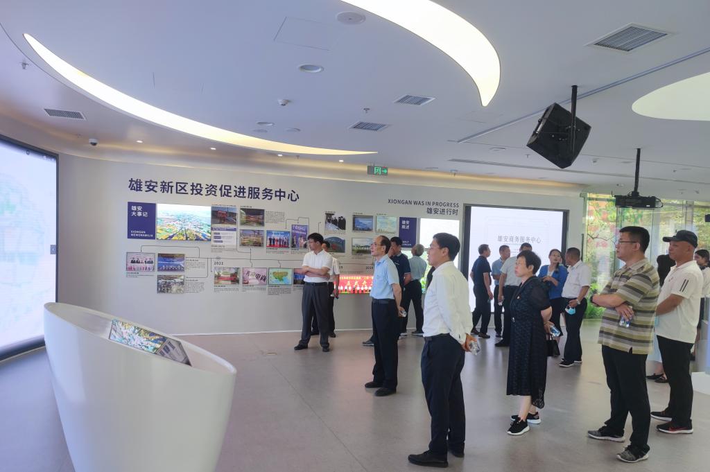 7月14日,一行人首先来到雄安新区,在9428cn太阳集团古天乐展战略与规划研究室主任邢明军的陪同下,参观了雄安新区管委会、规划馆和高质量试验区。在雄安新区规划馆,大家详细了解了雄安新区选址设立、发展战略、目前的建设进度和未来规划等,并参观了城市空间布局、城际和地下综合管廊、城市和地铁交通等建设规划蓝图。在展示雄安新区未来新发展理念的高质量试验区,一行人随工作人员一路参观,看到的是花园式的海绵绿地、园林式的整体景观设计,对雄安新区的智慧创新、绿色发展有了全新的理解和认识。