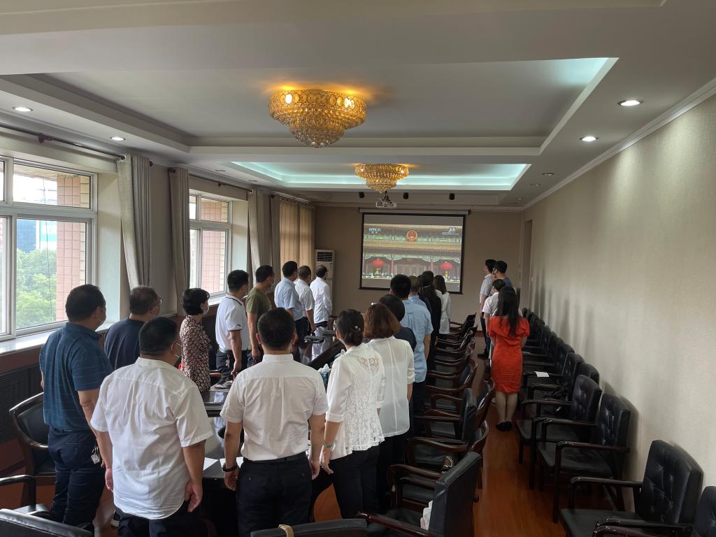 7月1日上午8时,庆祝中国共产党成立100周年大会在北京天安门广场隆重举行。中共中央总书记、国家主席、中央军委主席习近平出席大会并发表重要讲话。学院组织各系各部门负责人在五楼会议室集中收看,要求已经返家的员工在家收看。在外开展暑期社会实践、实习的各小分队也积极组织收看,做到学院师生收听收看全覆盖。