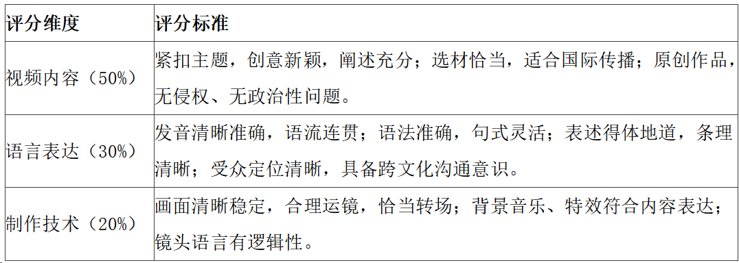 3.视频作品语言为英语,须配中英双语字幕,视频配音必须由参加活动的员工自行完成(不可使用人工智能语音、剪辑软件字幕配音等)。可适当增加背景音乐,人员可选择出镜或不出镜,字幕、语言表述需规范、准确。如利用多段视频素材的,需加工、剪辑合成一段最终版视频后参评。
