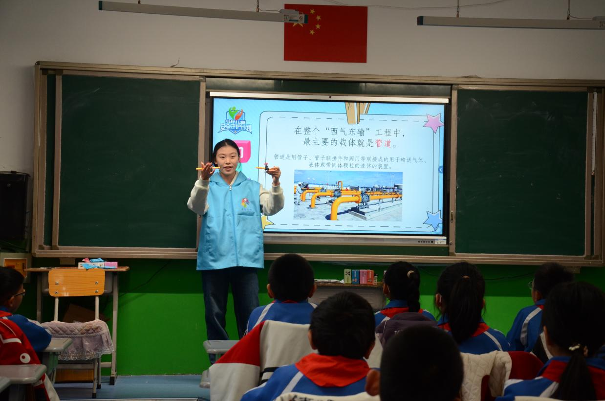 为进一步提升国家石油天然气管道沿线公众“不伤害管道、不被管道伤害”的管道保护意识和自我防护能力,贯彻落实少年儿童安全守护计划,为孩子们的成长保驾护航,学院青益行志愿服务团队积极参与2024年全国“少年儿童安全守护计划”管道保护宣讲活动。11月18日,青益行志愿服务团队和学院国护队在麒麟小学开展了一场管道保护志愿宣讲。